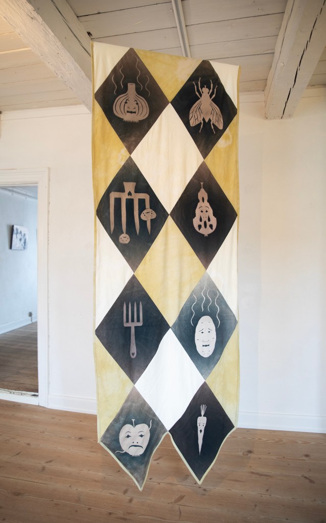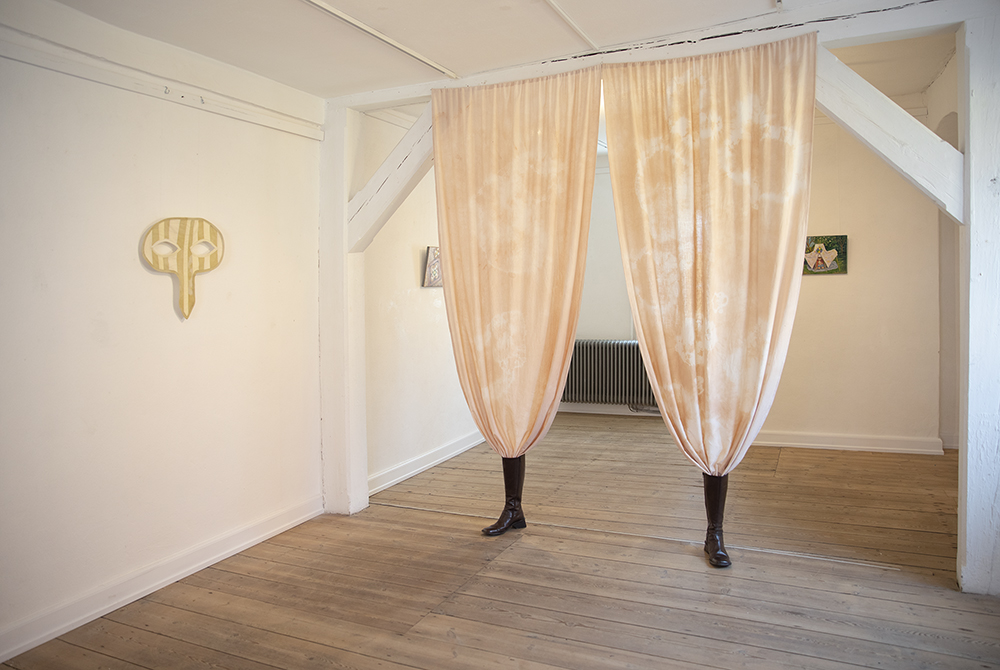 Birgitte Flarup has made oil paintings for the exhibition & Marie Flarup Kristensen has made textile sculptures and curtains.